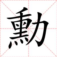 “勳” 字共有 16 画,拼音:xūn,注音:ㄒㄩㄣ,部首:力,笔画数:16 画,字体结构:左右结构,五行:金,五笔:TGLL,Unicode编码:U+52F3,郑码:MEUY,仓颉:HFKS,“勳”字笔顺为: