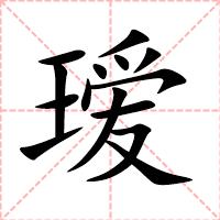 “瑷” 字共有 14 画,拼音:ài,注音:ㄞˋ,部首:王,笔画数:14 画,字体结构:左右结构,五行:土,五笔:GEPC,Unicode编码:U+7477,郑码:CPGX,仓颉:MGBBE,“瑷”字笔顺为: