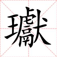 “瓛” 字共有 24 画,拼音:huán,注音:ㄏㄨㄢˊ|ㄧㄝˋ|ㄧㄚˋ,部首:王,笔画数:24 画,字体结构:左右结构,五行:木,五笔:GHAD,Unicode编码:U+74DB,郑码:CIGS,仓颉:MGYBK,“瓛”字笔顺为: