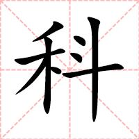 又如:科品(种类;等级);科荣(科第荣华);科爵(指封建王朝官员的品级爵位)