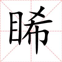 “睎” 字共有 12 画,拼音:xī,注音:ㄒㄧ,部首:目,笔画数:12 画,字体结构:左右结构,五行:金,五笔:HQDH,Unicode编码:U+774E,郑码:LOGL,仓颉:BUKKB,“睎”字笔顺为: