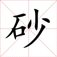 “沙”的俗字。指石之细碎者〖sand〗。如:砂颗(砂粒);砂壤(沙质的土壤);砂丁(矿工);砂石(砂土和石子);砂包(沙袋);型砂;砂碛(沙漠;沙滩)