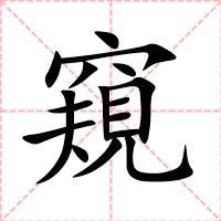 “窺” 字共有 16 画,拼音:kuī,注音:ㄎㄨㄟ,部首:穴,笔画数:16 画,字体结构:上下结构,五行:木,五笔:PWFQ,Unicode编码:U+7ABA,郑码:WOOL,仓颉:JCQOU,“窺”字笔顺为: