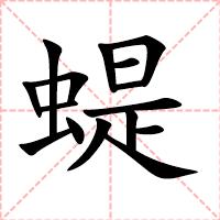“蝭” 字共有 15 画,拼音:dì,注音:ㄉㄧˋ,部首:虫,笔画数:15 画,字体结构:左右结构,五行:金,五笔:JJGH,Unicode编码:U+876D,郑码:IKAI,仓颉:LIAMO,“蝭”字笔顺为: