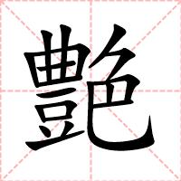 “艶” 字共有 19 画,拼音:yàn,注音:ㄧㄢˋ,部首:色,笔画数:19 画,字体结构:左右结构,五行:金,五笔:MAGC,Unicode编码:U+8276,郑码:KKRY,仓颉:TTNAU,“艶”字笔顺为: