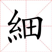 “細” 字共有 11 画,拼音:xì,注音:ㄒㄧˋ,部首:糹,笔画数:11 画,字体结构:左右结构,五行:金,五笔:XLG,Unicode编码:U+7D30,郑码:ZKI,仓颉:VFW,“細”字笔顺为: