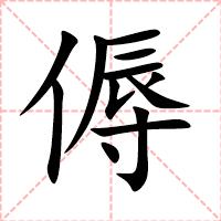 “傉” 字共有 12 画,拼音:nù,注音:ㄋㄨˋ,部首:亻,笔画数:12 画,字体结构:左右结构,五行:火,五笔:WDFF,Unicode编码:U+5089,郑码:NGDS,仓颉:OMVI,“傉”字笔顺为: