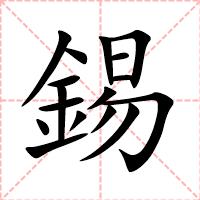 “錫” 字共有 16 画,拼音:xī,注音:ㄒㄧ,部首:釒,笔画数:16 画,字体结构:左右结构,五行:金,五笔:QJQR,Unicode编码:U+932B,郑码:PKRO,仓颉:CAPH,“錫”字笔顺为: