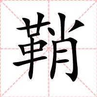 “鞘” 字共有 16 画,拼音:qiào,shāo,注音:ㄑㄧㄠˋ|ㄕㄠ,部首:革,笔画数:16 画,字体结构:左右结构,五行:木,五笔:AFIE,Unicode编码:U+9798,郑码:EEKQ,仓颉:TJFB,“鞘”字笔顺为: