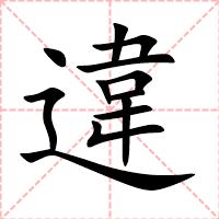 “違” 字共有 12 画,拼音:wéi,注音:ㄨㄟˊ,部首:辶,笔画数:12 画,字体结构:左下包围结构,五行:木,五笔:NHKP,Unicode编码:U+9055,郑码:WXJM,仓颉:YDMQ,“違”字笔顺为: