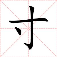 (指事。小篆字形,从又,从一。“又”象手形,“一”指下手腕一寸之处。“寸”是汉字部首之一,从“寸”的字往往与“手”有关。本义:中医切脉,称距离手腕一寸长的部位为“寸口”,简称“寸”)