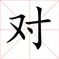 朝,向——用作虚词,表示动作的对象〖to〗。如:对他的父亲谈及此事;对你的牙是凉了点;对耕作的危害;对财产的权利