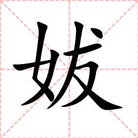 “妭” 字共有 8 画,拼音:bá,注音:ㄅㄚˊ,部首:女,笔画数:8 画,字体结构:左右结构,五行:水,五笔:VDCY,Unicode编码:U+59AD,郑码:ZMXS,仓颉:VIKE,“妭”字笔顺为: