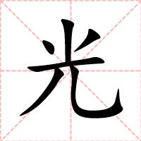 “光” 字共有 6 画,拼音:guāng,注音:ㄍㄨㄤ,部首:儿,笔画数:6 画,字体结构:上下结构,五行:火,五笔:IQB,Unicode编码:U+5149,郑码:KOGR,仓颉:FMU,“光”字笔顺为:丨丶ノ一ノフ: 竖、点、撇、横、撇、横撇
