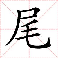 (会意。从倒毛在尸后。尸,指人。象人长有尾巴。本义:人或动物的尾巴)