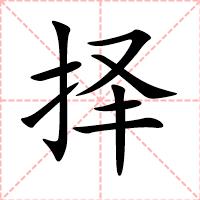 又如:择席之癖(有选择睡铺的习惯);择吉结缡(选择吉日,迎娶完婚);择邻(选择邻居);择木(选择主人,为其效劳);择术(选择职业);择尤(挑选突出的);择决(挑选);择车(经过挑选的战车);择官(挑选官职);择婿(挑选女婿;挑选夫婿)