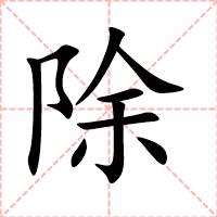“除” 字共有 9 画,拼音:chú,注音:ㄔㄨˊ,部首:阝,笔画数:9 画,字体结构:左右结构,五行:火,五笔:BWTY,Unicode编码:U+9664,郑码:YOMF,仓颉:NLOMD,“除”字笔顺为:フ丨ノ丶一一丨ノ丶: 横撇、竖、撇、点、横、横、竖、撇、点