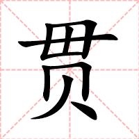 “贯” 字共有 8 画,拼音:guàn,注音:ㄍㄨㄢˋ,部首:贝,笔画数:8 画,字体结构:上下结构,五行:木,五笔:XFMU,Unicode编码:U+8D2F,郑码:ZYLO,仓颉:WJBO,“贯”字笔顺为:フフ丨一丨フノ丶: 横撇、横撇、竖、横、竖、横撇、撇、点