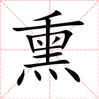 (俗作燻。会意。金文,上面象火烟冒出,中间是烟突(本古“窗”字),两点表示烟苔,下面是火焰。合起来是烟突冒烟。本义:火烟向上冒)