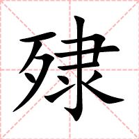 “殔” 字共有 12 画,拼音:yì,注音:ㄧˋ,部首:歹,笔画数:12 画,字体结构:左右结构,五行:火,五笔:GQVI,Unicode编码:U+6B94,郑码:ARXK,仓颉:MNLE,“殔”字笔顺为: