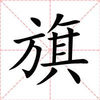 表识,标志〖pennant〗。如:旗亭(酒楼。悬旗为酒招);旗望(酒旗);旗麾(将旗)