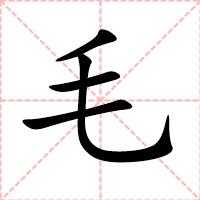 (象形。金文字形。“毛”是汉字的一个部首,从“毛”的字多与皮毛有关。本义:眉毛、头发、兽毛)
