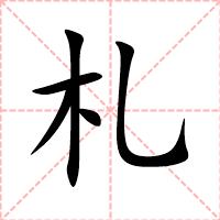 缠绕;捆,绑〖bind〗。如:札裹(收拾;打扮);札缚(结扎;捆缚);札合(把分散的东西捆在一起);札足(缠足);札抹(犹缠束);札实(牢靠稳固)