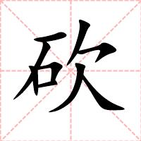 “砍” 字共有 9 画,拼音:kǎn,注音:ㄎㄢˇ,部首:石,笔画数:9 画,字体结构:左右结构,五行:土,五笔:DQWY,Unicode编码:U+780D,郑码:GRO,仓颉:XMRNO,“砍”字笔顺为: