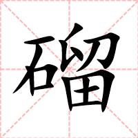 “磂” 字共有 15 画,拼音:liú,注音:ㄌㄧㄡˊ|ㄌㄧㄡˋ,部首:石,笔画数:15 画,字体结构:左右结构,五行:火,五笔:DQYL,Unicode编码:U+78C2,郑码:GRYK,仓颉:MRHHW,“磂”字笔顺为:
