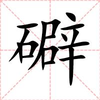 “礔” 字共有 18 画,拼音:pī,注音:ㄆㄧ,部首:石,笔画数:18 画,字体结构:左右结构,五行:水,五笔:DNKU,Unicode编码:U+7914,郑码:GXJS,仓颉:MRSRJ,“礔”字笔顺为: