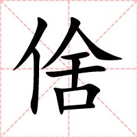 “倽” 字共有 10 画,拼音:shà,注音:ㄕㄚˋ,部首:亻,笔画数:10 画,字体结构:左右结构,五行:金,五笔:WWFK,Unicode编码:U+503D,郑码:NOMI,仓颉:OOMR,“倽”字笔顺为: