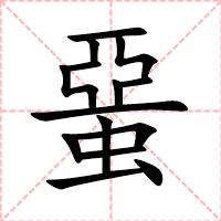 “蝁” 字共有 14 画,拼音:è,注音:ㄜˋ,部首:虫,笔画数:14 画,字体结构:上下结构,五行:土,五笔:GHGJ,Unicode编码:U+8741,郑码:BZI,仓颉:MMLMI,“蝁”字笔顺为: