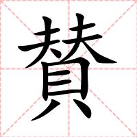“賛” 字共有 15 画,拼音:zàn,注音:ㄗㄢˋ,部首:貝,笔画数:15 画,字体结构:上下结构,五行:火,五笔:FWFM,Unicode编码:U+8CDB,郑码:BDOL,仓颉:QOBUC,“賛”字笔顺为: