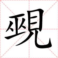 “覡” 字共有 14 画,拼音:xī,注音:ㄒㄧ,部首:見,笔画数:14 画,字体结构:左右结构,五行:金,五笔:AWWQ,Unicode编码:U+89A1,郑码:BIOL,仓颉:MOBUU,“覡”字笔顺为: