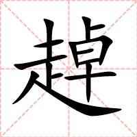 “趠” 字共有 15 画,拼音:chuō,zhuó,注音:ㄔㄨㄛ,ㄓㄨㄛˊ,部首:走,笔画数:15 画,字体结构:左下包围结构,五行:金,五笔:FHHJ,Unicode编码:U+8DA0,郑码:BOKE,仓颉:GOYAJ,“趠”字笔顺为: