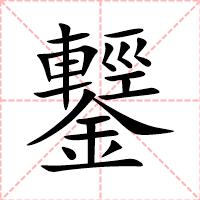 “鑋” 字共有 22 画,拼音:qīng,注音:ㄑㄧㄥ,部首:金,笔画数:22 画,字体结构:上下结构,五行:金,五笔:LGVQ,Unicode编码:U+944B,郑码:FKBP,仓颉:JMC,“鑋”字笔顺为: