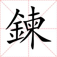“鍊” 字共有 17 画,拼音:liàn,注音:ㄌㄧㄢˋ,部首:釒,笔画数:17 画,字体结构:左右结构,五行:金,五笔:QGLI,Unicode编码:U+934A,郑码:PFLK,仓颉:CDWF,“鍊”字笔顺为: