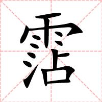 “霑” 字共有 16 画,拼音:zhān,注音:ㄓㄢ,部首:雨,笔画数:16 画,字体结构:上下结构,五行:水,五笔:FIHK,Unicode编码:U+9711,郑码:FVIJ,仓颉:MBEYR,“霑”字笔顺为: