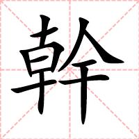 “幹” 字共有 13 画,拼音:gàn,注音:ㄍㄢˋ,部首:幹,笔画数:13 画,字体结构:左右结构,五行:木,五笔:FJWF,Unicode编码:U+5E79,郑码:EDAE,仓颉:JJOMJ,“幹”字笔顺为: