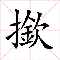 “撳” 字共有 15 画,拼音:qìn,注音:ㄑㄧㄣˋ,部首:扌,笔画数:15 画,字体结构:左右结构,五行:火,五笔:RQQW,Unicode编码:U+64B3,郑码:DPRO,仓颉:QCNO,“撳”字笔顺为: