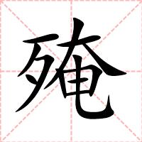 “殗” 字共有 12 画,拼音:yè,注音:ㄧㄝˋ|ㄧㄢ|ㄧㄢˋ,部首:歹,笔画数:12 画,字体结构:左右结构,五行:水,五笔:GQDN,Unicode编码:U+6B97,郑码:ARKZ,仓颉:MNKLU,“殗”字笔顺为:
